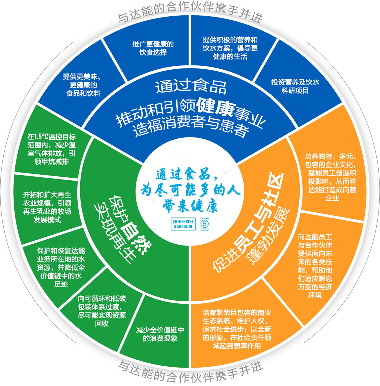 对于每一个支柱,达能都定义了全新的优先事项,并设定了相关中长期目标,帮助公司产生最大影响和创造最大价值。