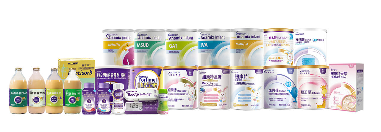 达能纽迪希亚成人医学营养品业务于1994年进入中国市场,在中国主要生产经营以纽迪希亚(Nutricia)品牌为核心的肠内临床营养药品(ECN)、复尔凯肠内营养输注系统(Medical Device)以及满足特殊医学用途的配方食品(FSMP)。达能纽迪希亚秉持“为中国人做真正的医学营养品”的企业使命,打造了能全力(Nutrison MF)、百普力(Peptisorb Liquid)、康全力(Diason)、能全素(Nutrison Powder)、复尔凯(Flocare)、以及智敏捷(Souvenaid)等知名医学营养品牌。