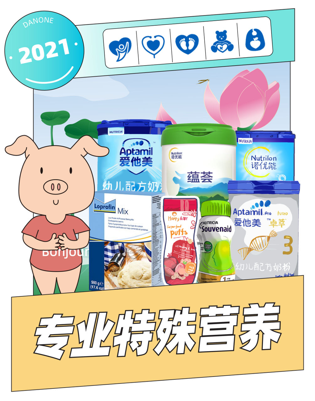 作为一家知名的跨国食品饮料公司,达能在基础乳制品和植物基产品、饮用水和饮料,以及专业特殊营养三大业务领域,积极发展具有增长潜力的健康产品品类。达能以“One Planet. One Health”为行动框架,认为人类健康和地球健康息息相关,鼓励更为健康、更有利于可持续发展的饮食行为。